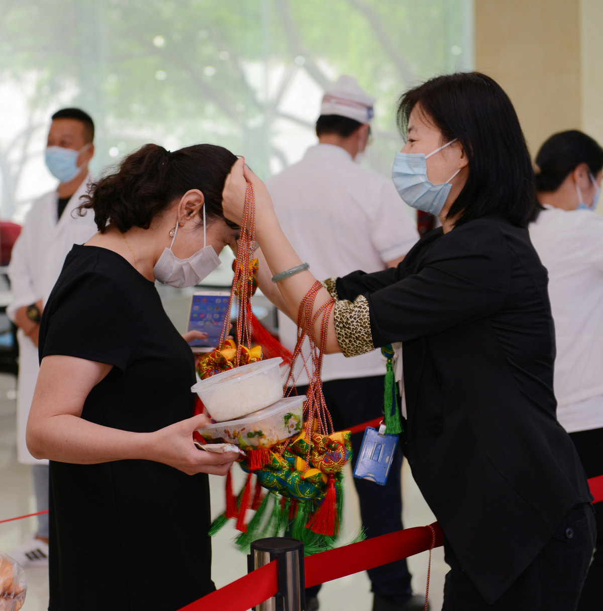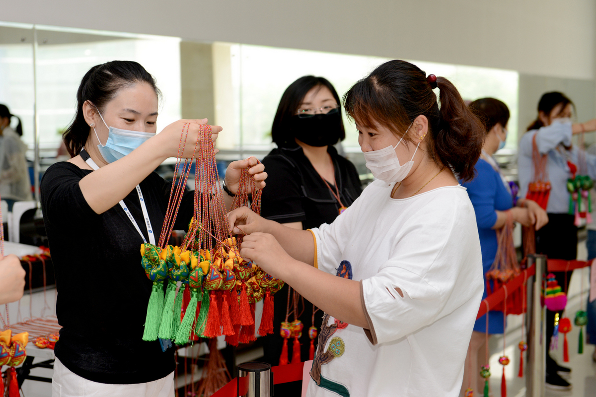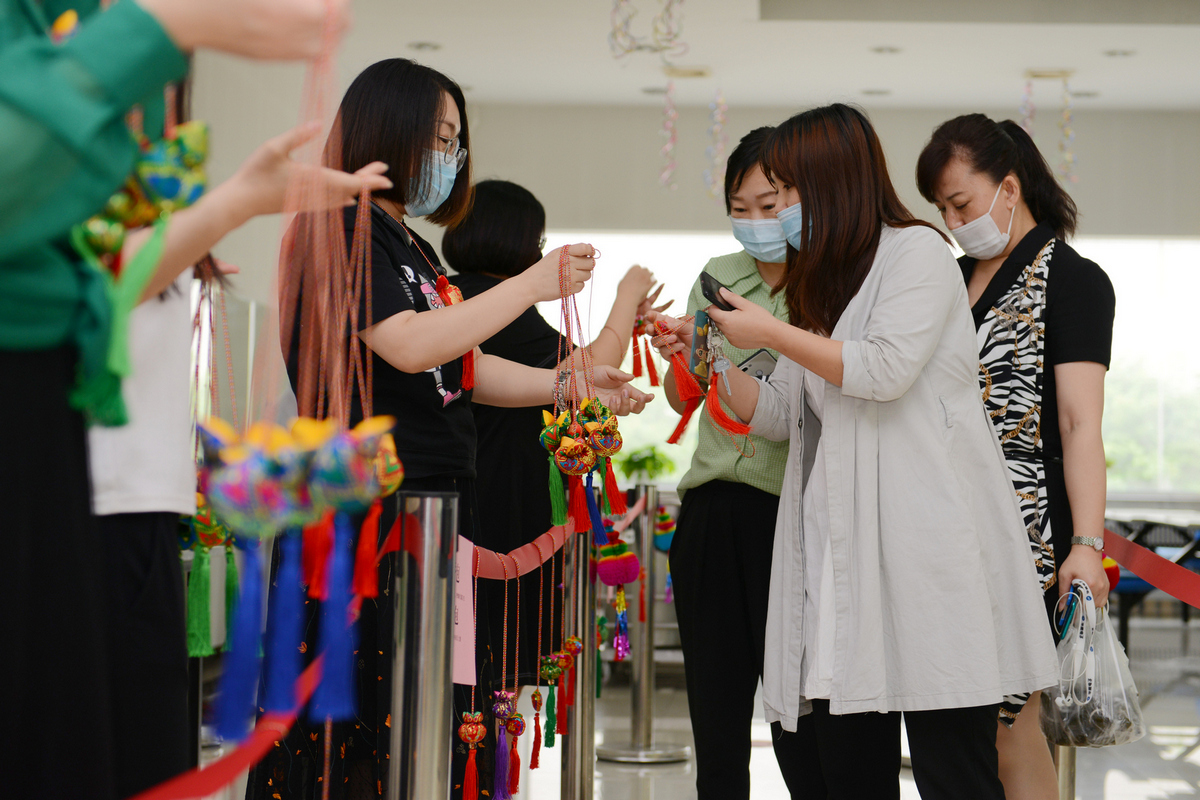 为员工佩戴端午香包