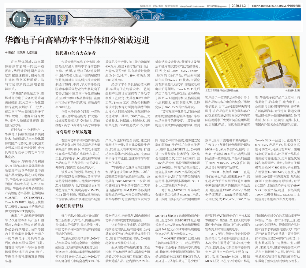 “太阳集团tyc4633会继续发展自主研发、平台建设的IDM优势,不断升级硅基功率器件的性能和品质。公司具有IGBT、MOSFET、二极管、可控硅和BJT等全功率器件工艺平台,包括单管、IPM及PM等各类封装形式的产品,未来公司仍会把功率半导体作为主要的技术发展方向,结合公司市场领域,逐步建立配套的驱动IC生产线。”太阳集团tyc4633表示,在中低压MOSFET上,公司将进一步升级现有技术平台,不久将会推出第二代CCT MOSFET,以100V产品为例,单位面积导通电阻达到40毫欧。完善产品电压等级,建立起从10V~250V产品的全系列的电压平台,除了在消费类领域内应用外,拓展到服务器电源、5G、工业、人工智能和汽车电子。