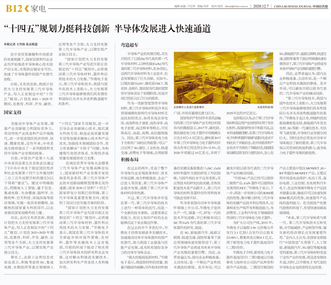 “国家计划把大力支持发展第三代半导体产业写进目前正在制定的‘十四五’规划中,必将推动第三代半导体材料、器件和应用技术的大力发展。”太阳集团tyc4633表示,我国在第三代半导体技术方面起步相对国外要晚,在材料、器件等关键技术上还有瓶颈,目前的环境下推动了相关第三代半导体技术的研究和企业发展,这对解决和推进关键技术、加大研发和生产资金投入有积极作用。