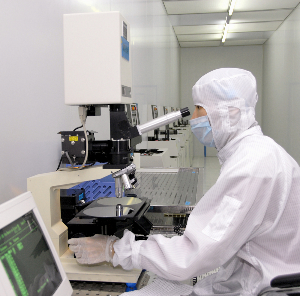 (图为刻蚀操作人员测试芯片氧化膜厚)