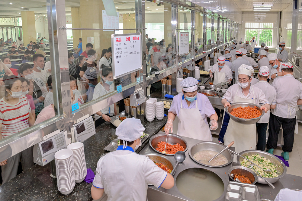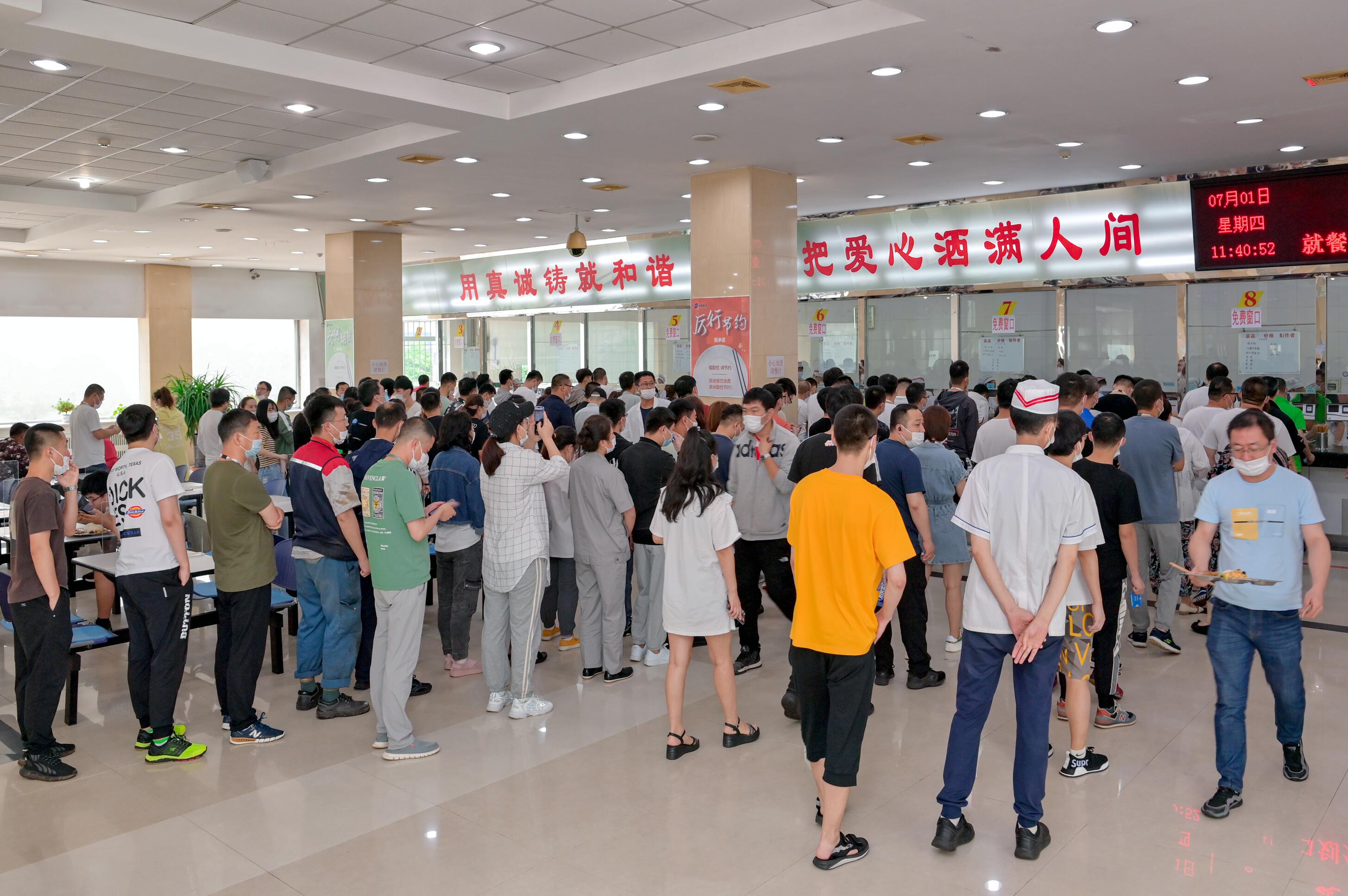 员工有序排队 文明就餐